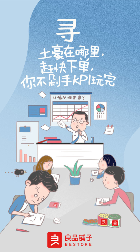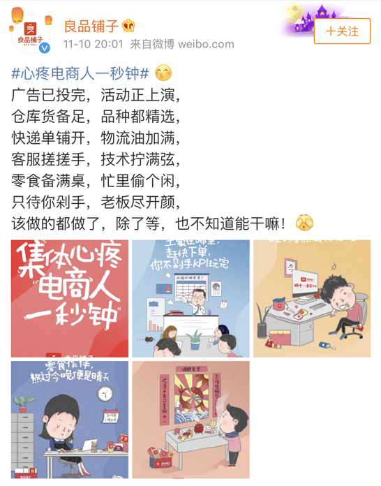 At 8:01 p.m. on November 10, 2018, while customers were finally confirming their shopping carts, e-commerce businessmen checking various settings of the platform, and brand operators waiting for the real-time data to make time points of supplies, the Official Weibo of BESTORE released a set of posters called “Show pity on e-commerce businessmen for a second”, which, by the deliberate copywriting and tender painting style, poked the pain points of countless e-commerce businessmen and quickly attracted the public’s attention.