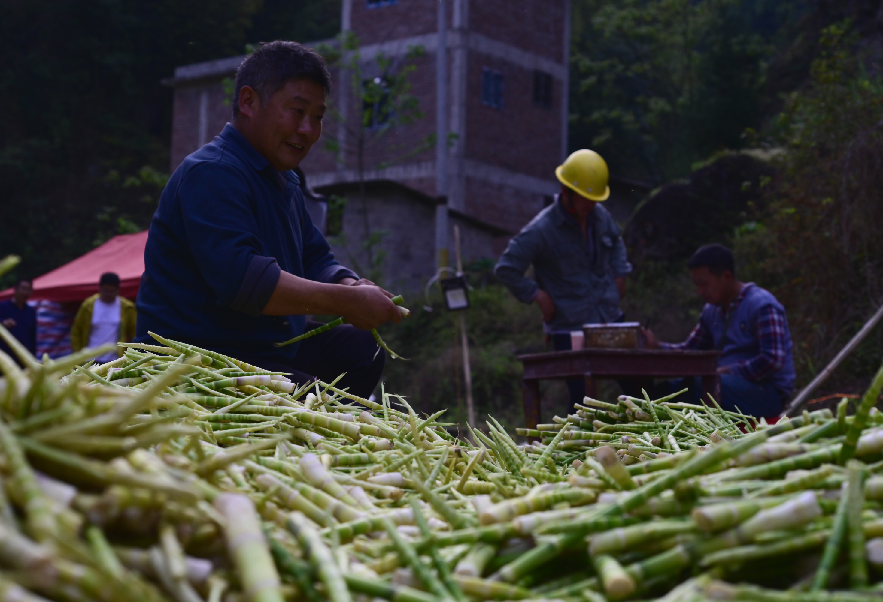 4月中旬,云南昭通大關縣天星鎮(zhèn)魚孔村,徐井貴和朱新燕小兩口,在海拔1800-2000米的原始山林里,搭起了棚戶,100畝的自家竹林在精心維護兩年后,今年收成更佳。“每天可以采200斤,今年價格比去年更好,干勁十足!”