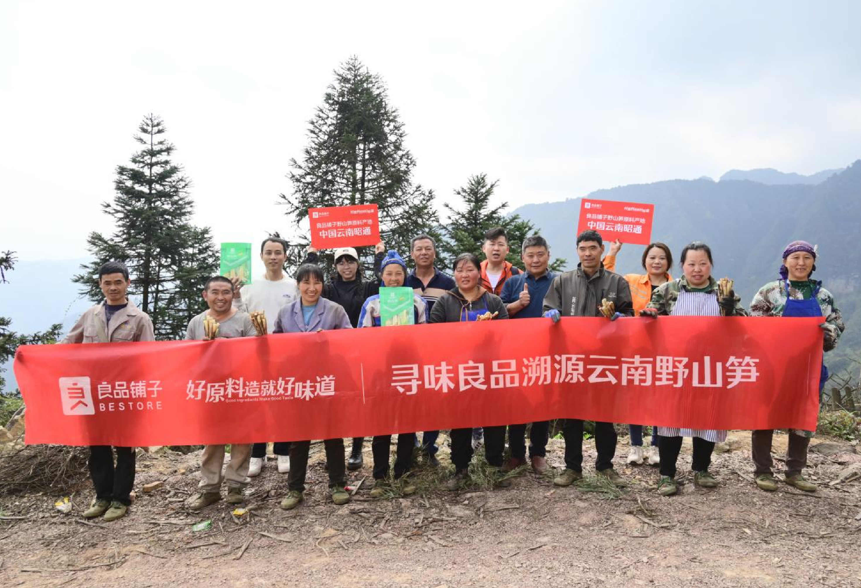 2014年,良品鋪子正式推出高山野山筍,選用的就是來自云南昭通山區(qū)的A級、長度8-13cm的野生筇竹筍,其生長在海拔1800—2000米高山上,山高林密,地勢險峻,至今無法用機械化方式收割,只能靠筍農上山人工收割。